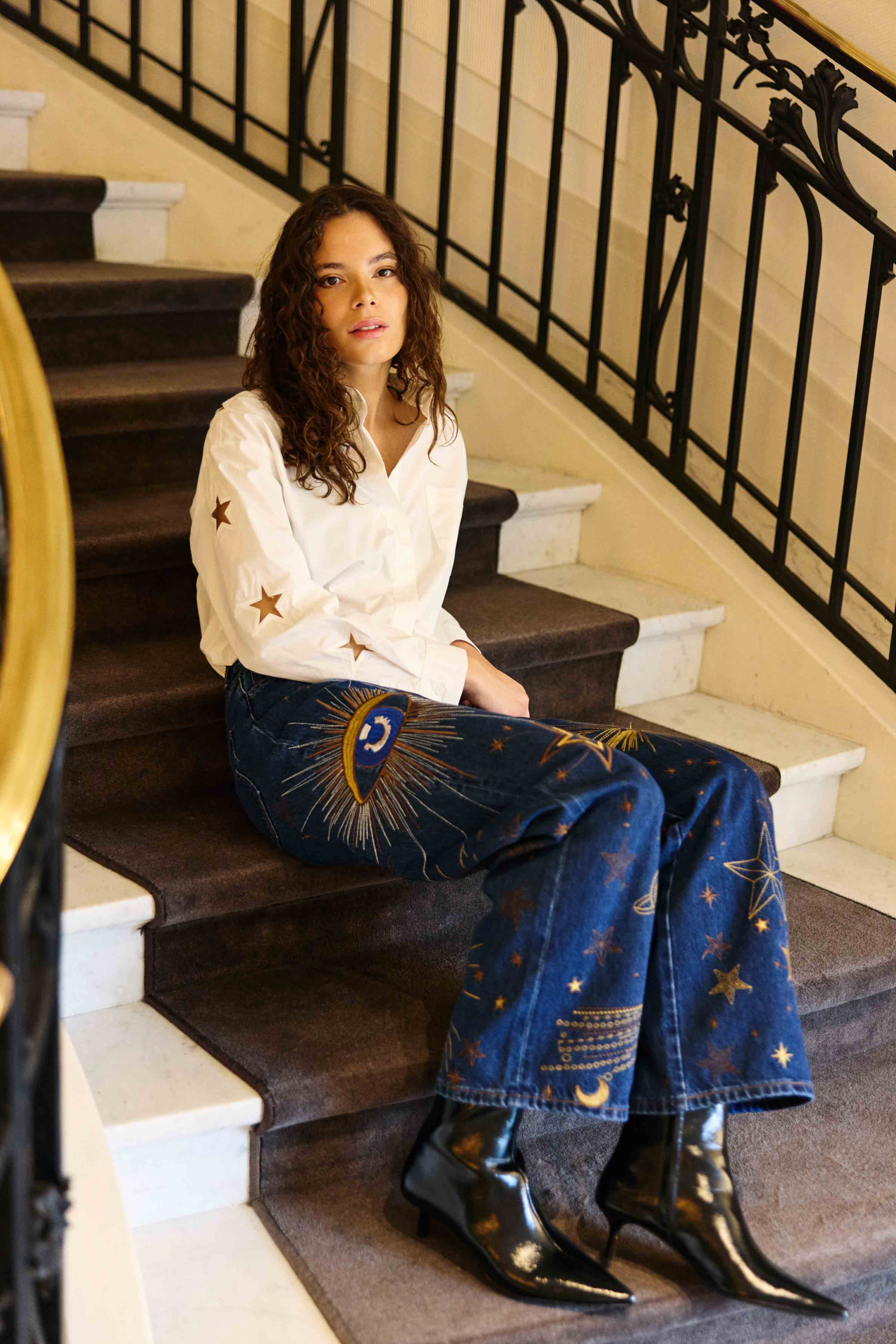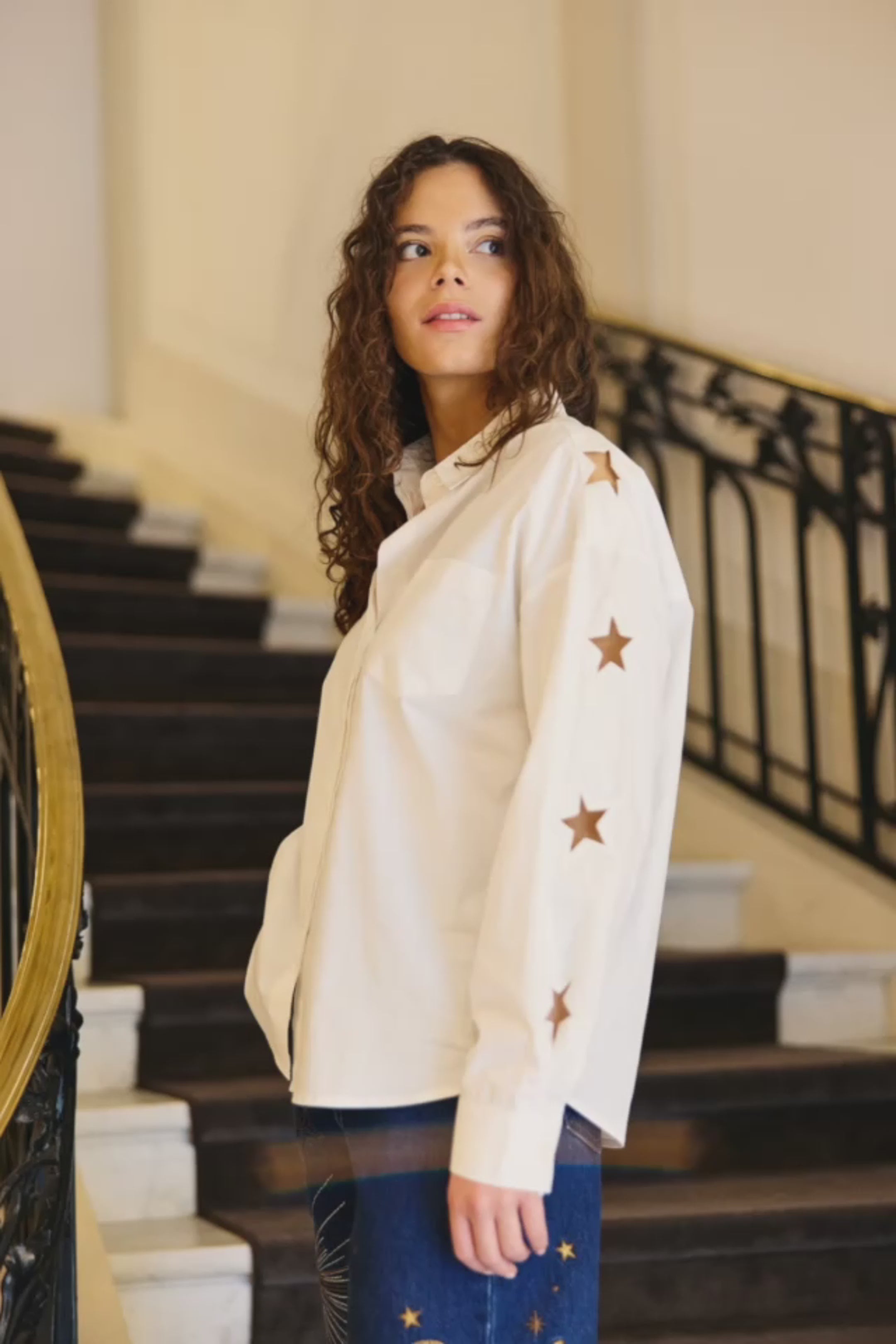 Chemisier droit brodé étoile