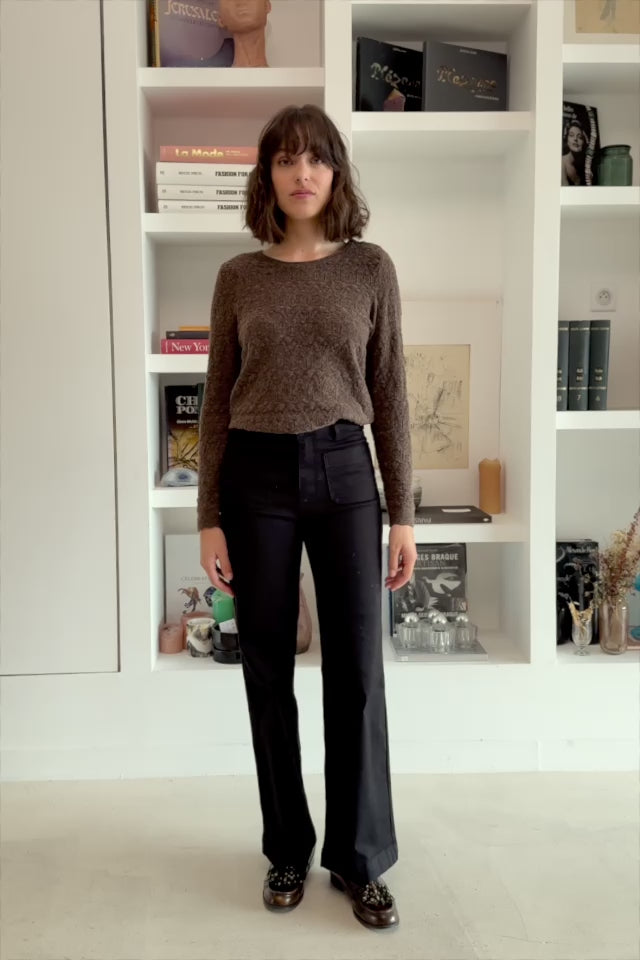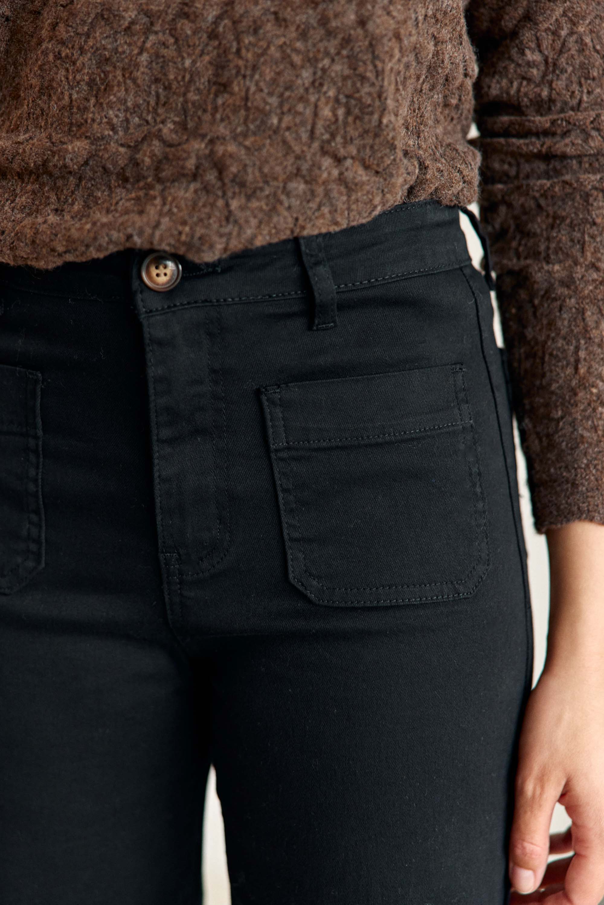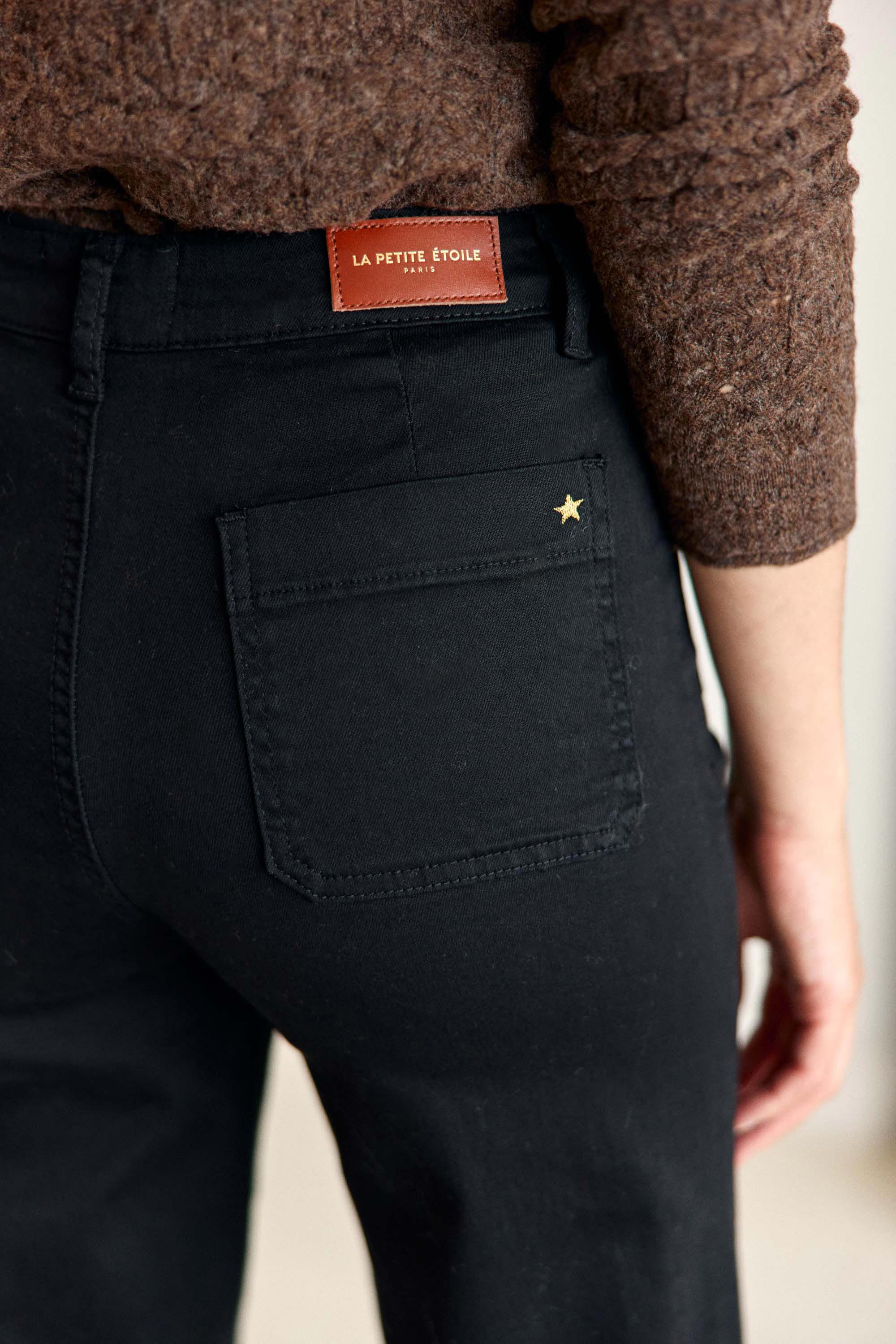 Atlantyt, le jean noir à coupe évasée, un essentiel moderne qui allie confort, style et allure féminine intemporelle.