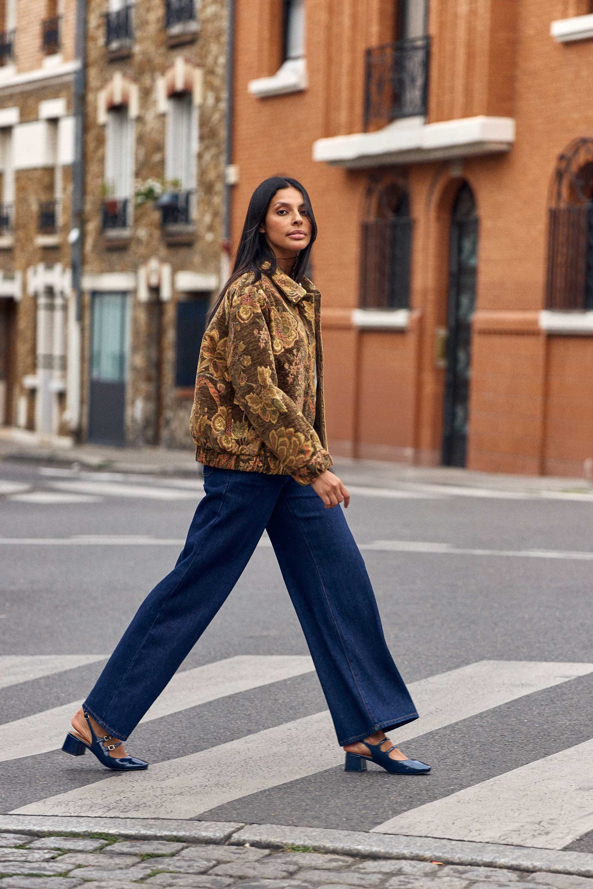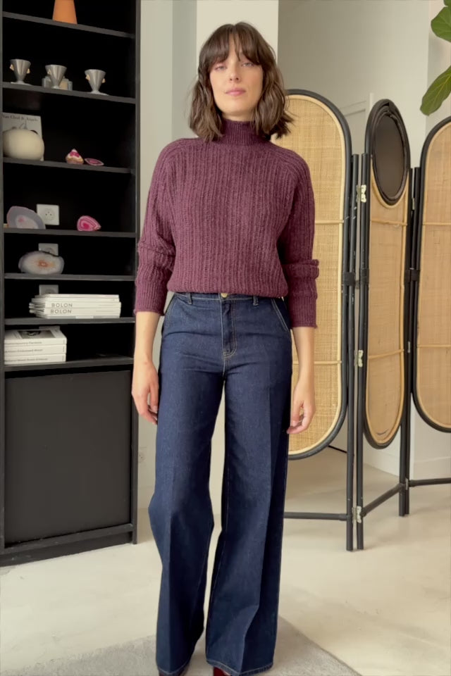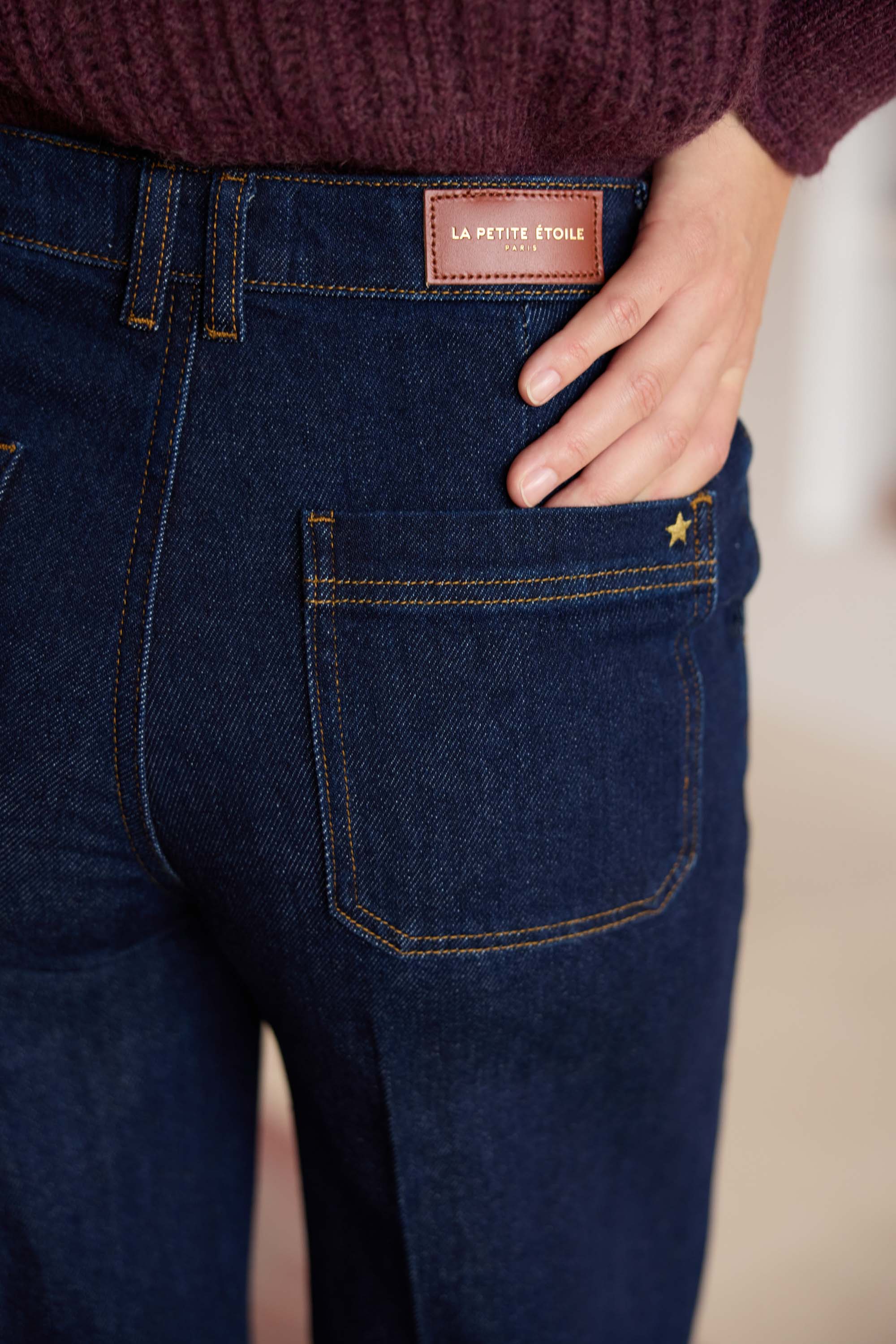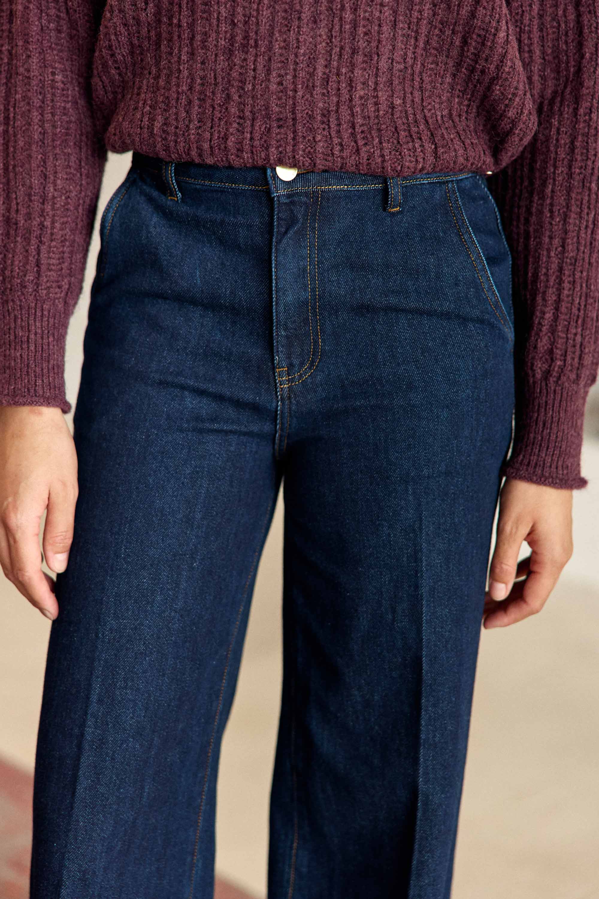 Petrona, le jean droit et large en coton, chic et moderne avec poches italiennes, poches dos et plis devant.