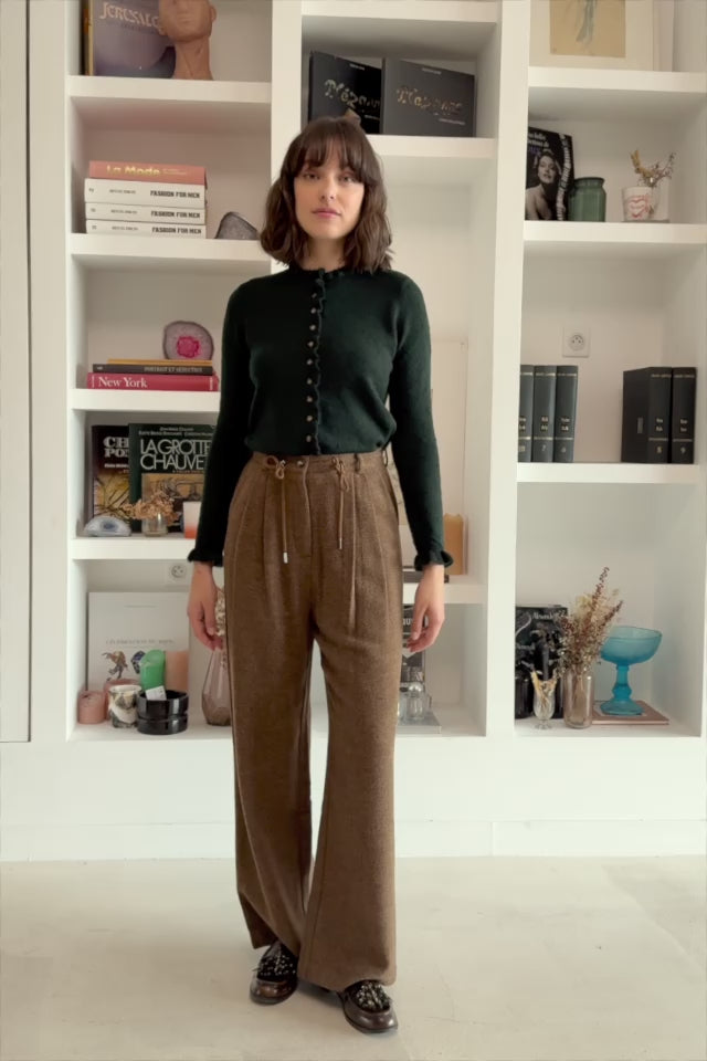 Paloma, le pantalon droit et large au tissage chevron, chic et confortable avec cordons de serrage à la taille.