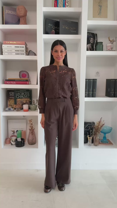 Panya, le pantalon droit à plis, élégant et confortable avec poches italiennes et fermeture zip et boutons.