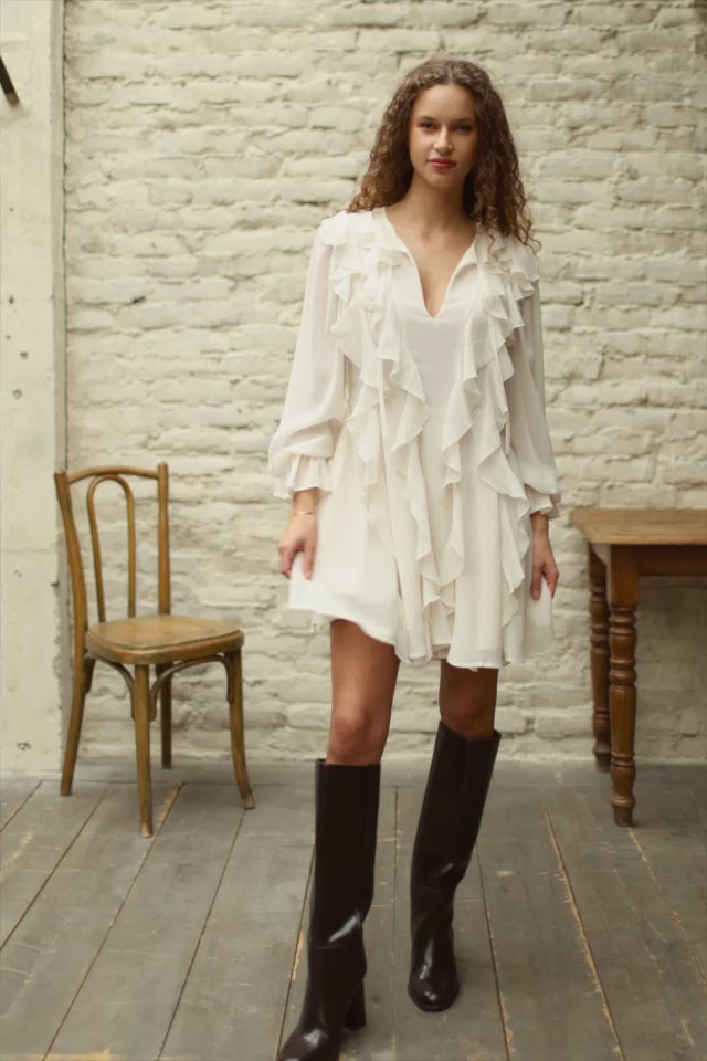 Robe courte à volants écrue – Rux