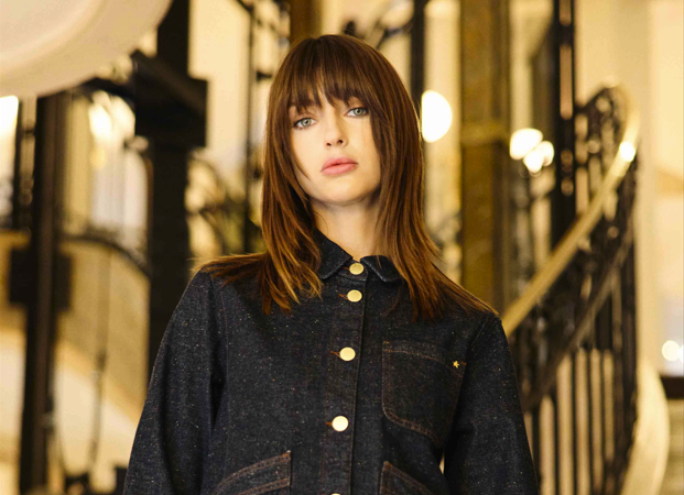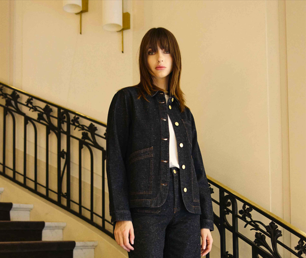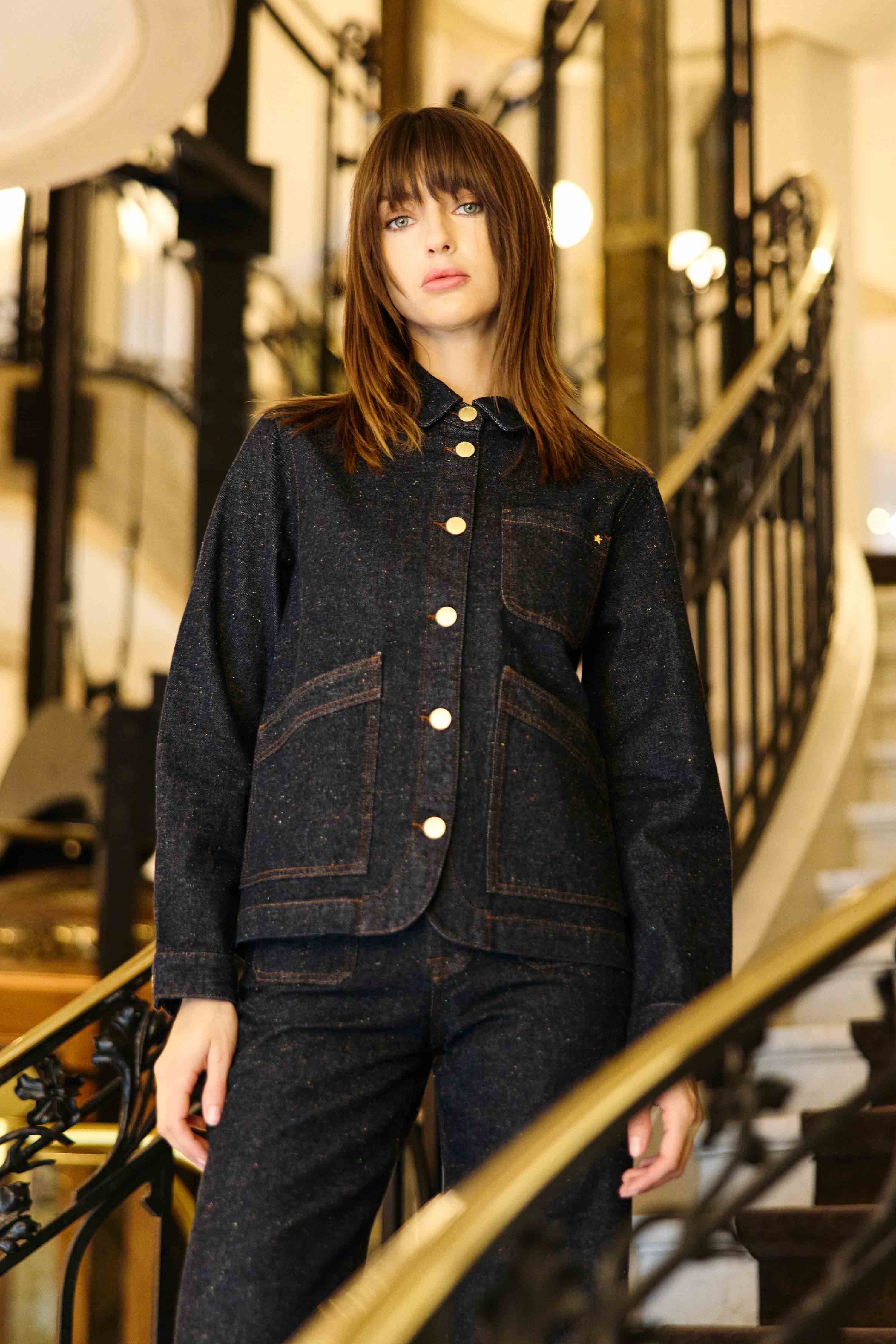 Fauline, la veste en denim brut à coupe droite, avec col chemise et poches plaquées.