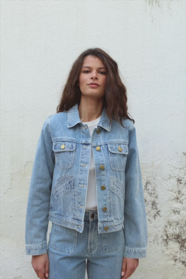 Nelson est une veste en jean marble wash à la coupe cropped qui structure le haut du corps et met la taille en valeur. Son délavage effet marble apporte du relief et une touche de caractère, tandis que le denim solide suit naturellement les mouvements et garde un porté facile.